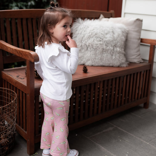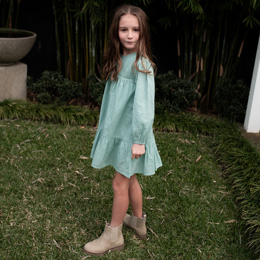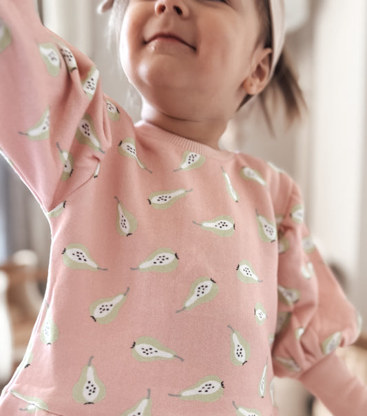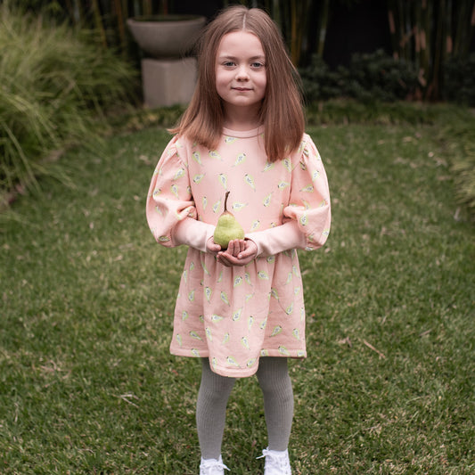 Our new season Vintage inspired floral pairs perfectly with our new denim pieces. Our fun pear print brings a freshness to the cooler months. A collection of natural eco friendly materials in fabrics of woven Cotton, Cotton/flax and soft Lenzing Modal (100% viscose) that are designed to be timeless, loved, played in and then passed down through family and friends.