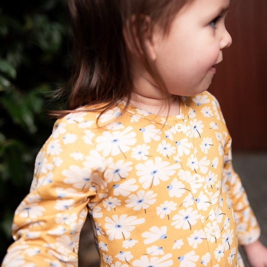 Our new season Vintage inspired floral pairs perfectly with our new denim pieces. Our fun pear print brings a freshness to the cooler months. A collection of natural eco friendly materials in fabrics of woven Cotton, Cotton/flax and soft Lenzing Modal (100% viscose) that are designed to be timeless, loved, played in and then passed down through family and friends.